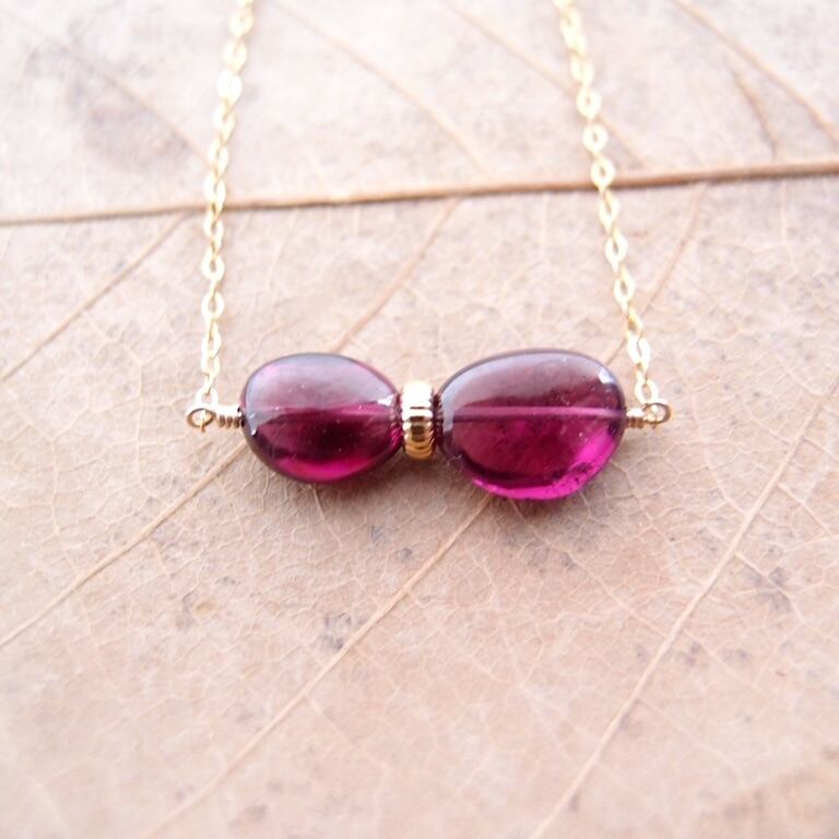 【K14gf】Rhodolite Garnet Ncklace/ロードライトガーネット ネックレス(Tumble)