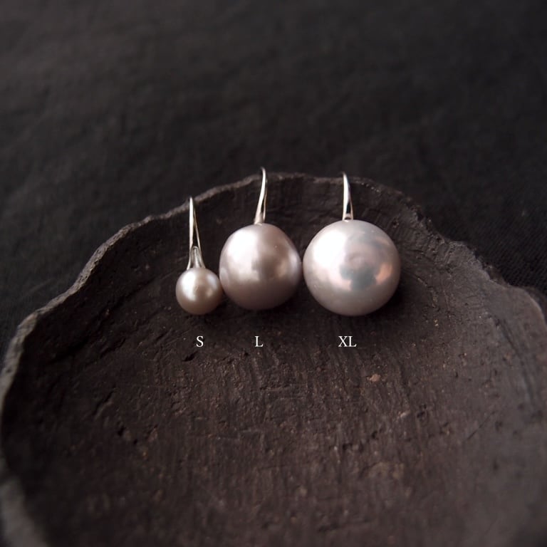 【Gray/Medium】Baby Spoon Pearl Earrings/ベビースプーン バロックパールピアス(silver/8mm)