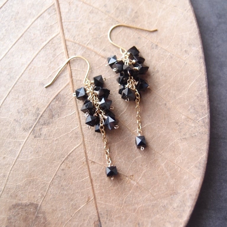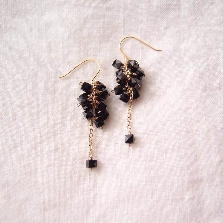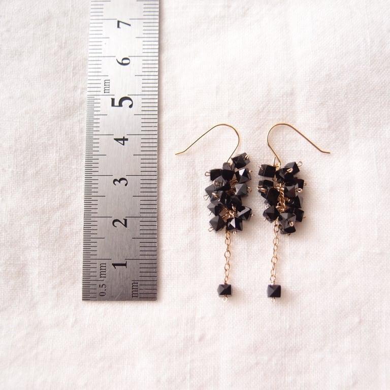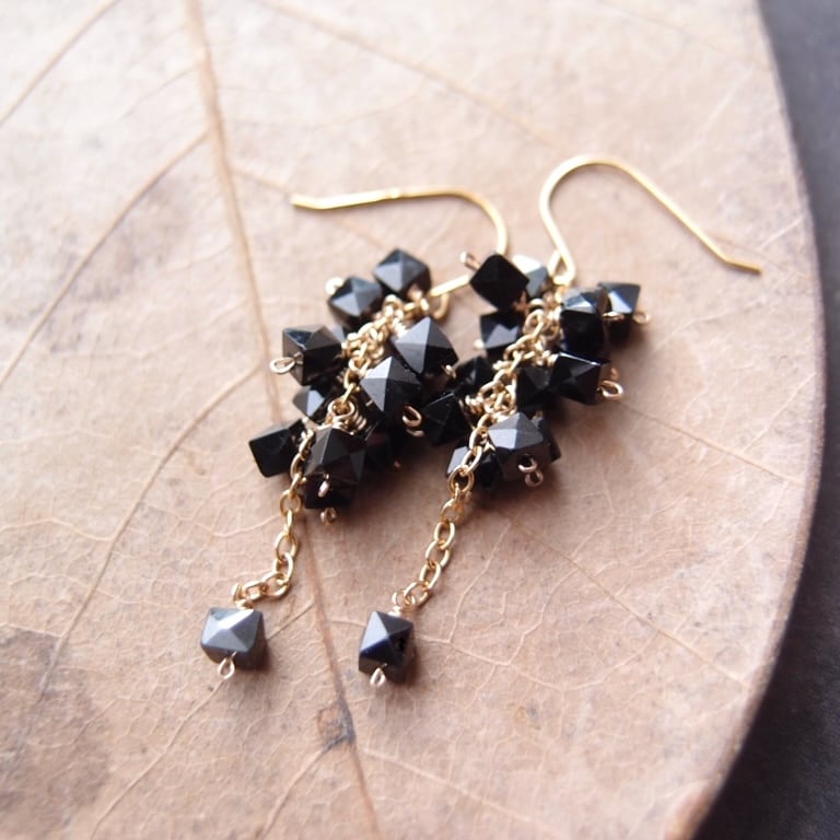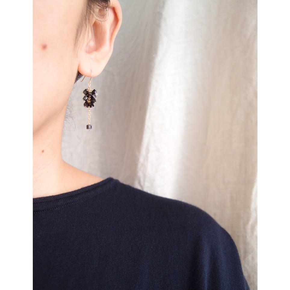 【k14gf】Black Spinel Earrings/ブラックスピネル フリンジピアス(Cube)