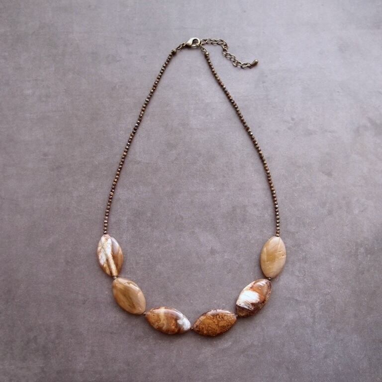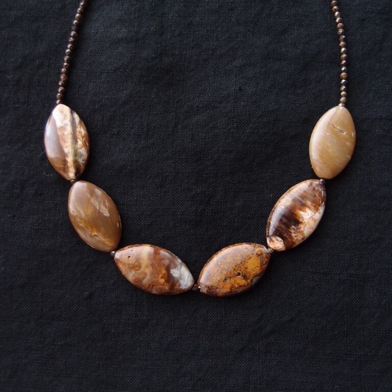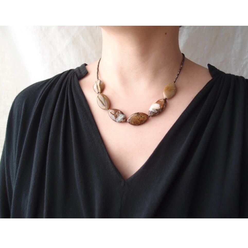 天然石ペトリファイドウッドのネックレス。