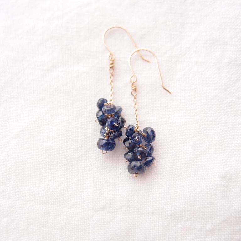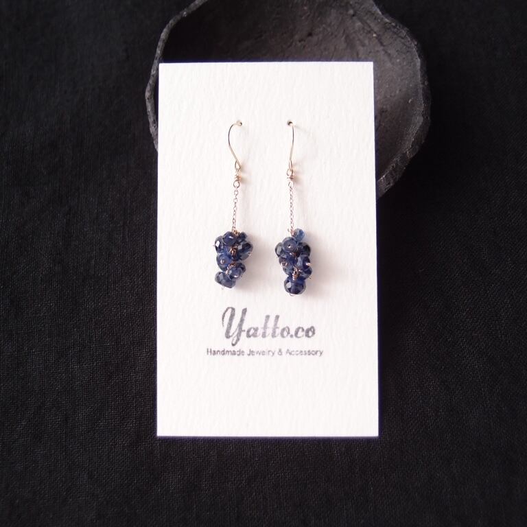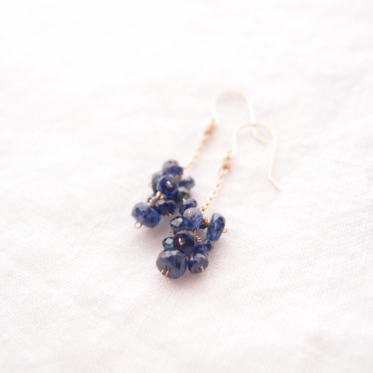 深いロイヤルブルーカイヤナイトの繊細なチェーンピアス。