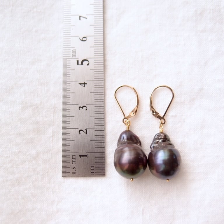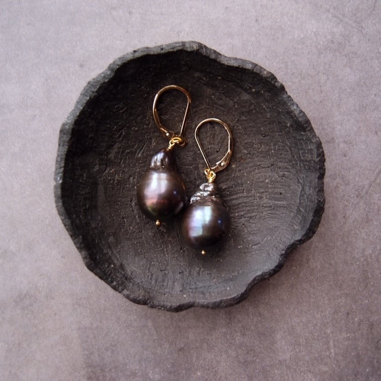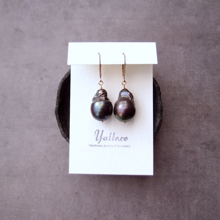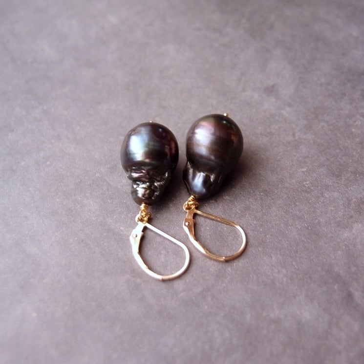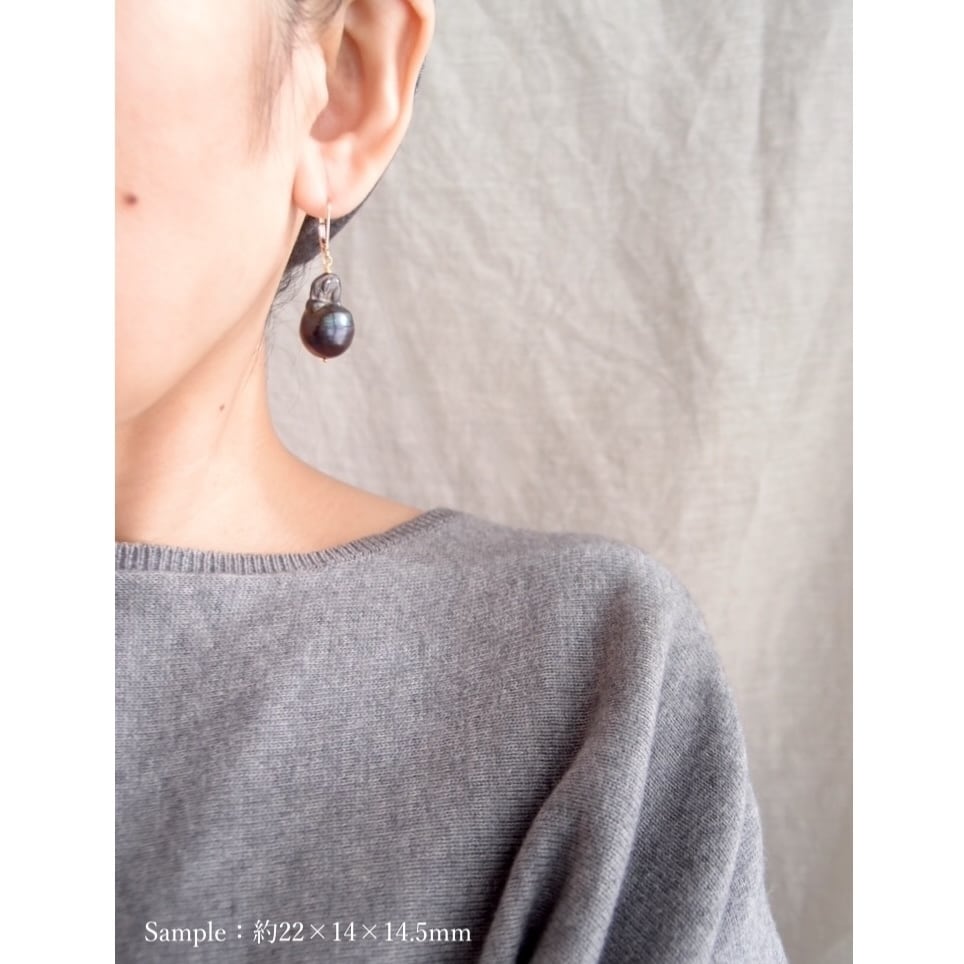 再入荷【K14gf】Fishtail Baroque Pearl Earrings/オイスターバロックパール フレンチピアス(Black)