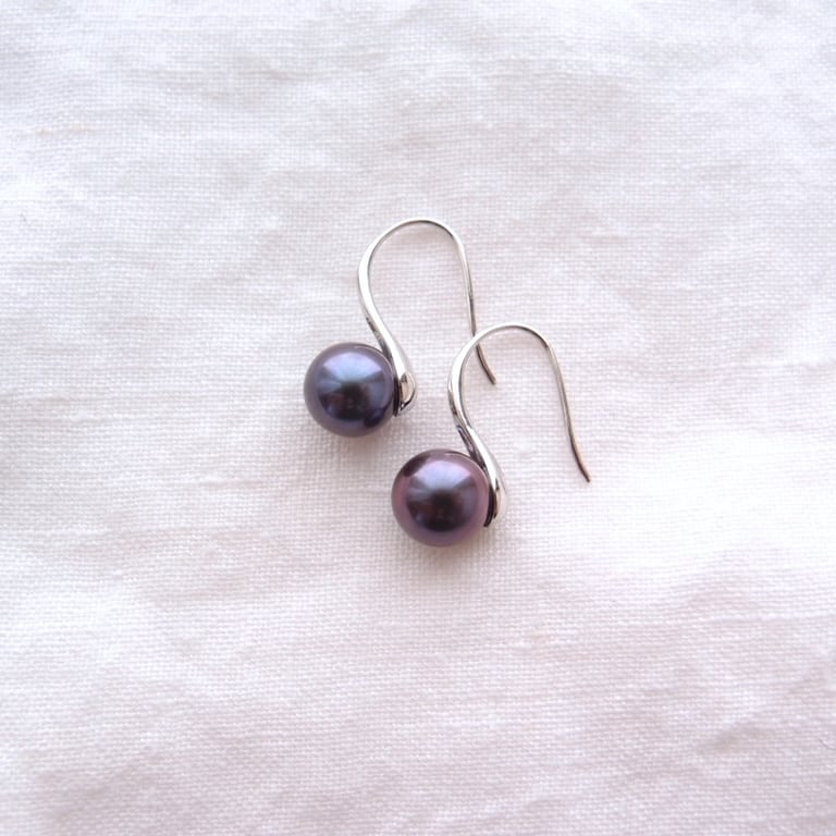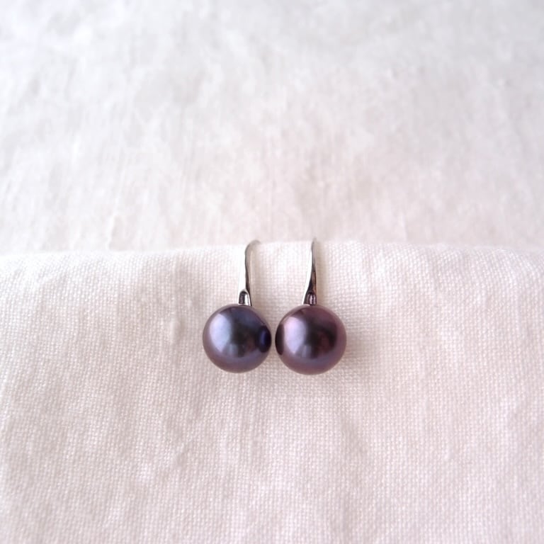 再入荷【Black/Medium】Baby Spoon Pearl Earrings/ベビースプーン ラウンドパールピアス
