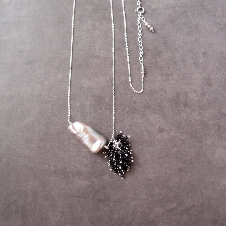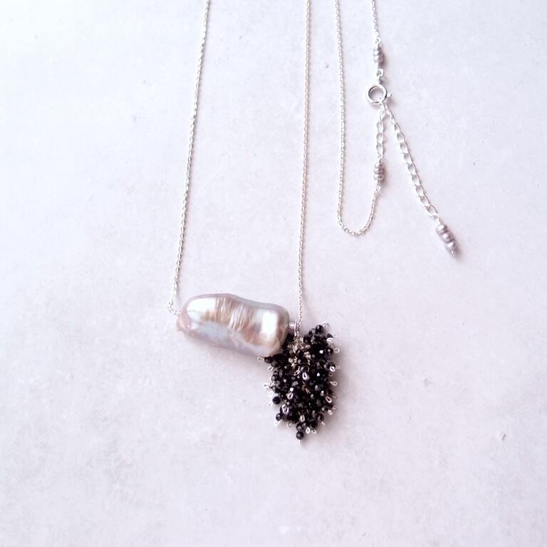 再入荷【SV】Biwa Pearl × Black Spinel 2way Necklace /パール×ブラックスピネル 2wayネックレス(Gray)