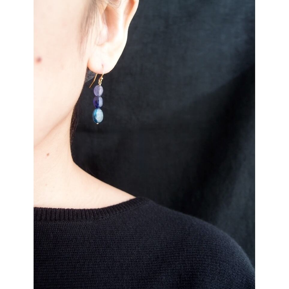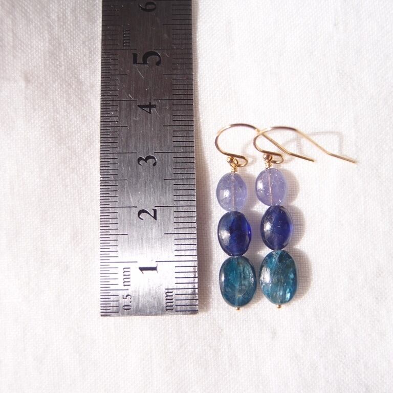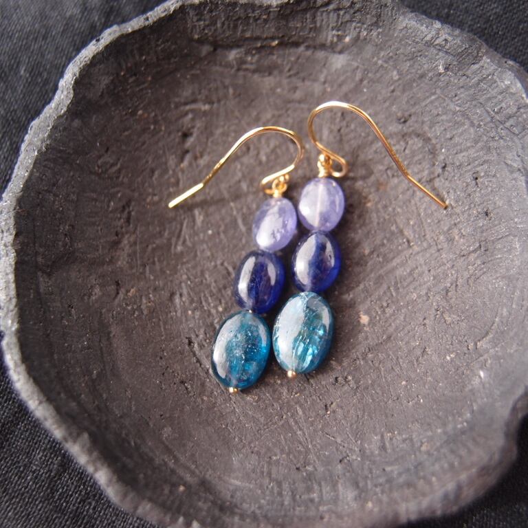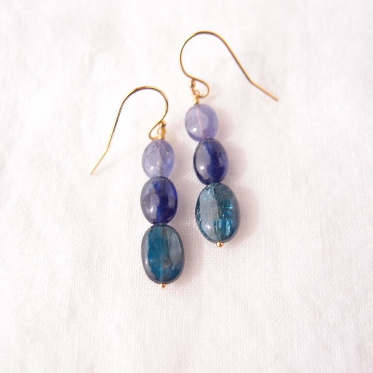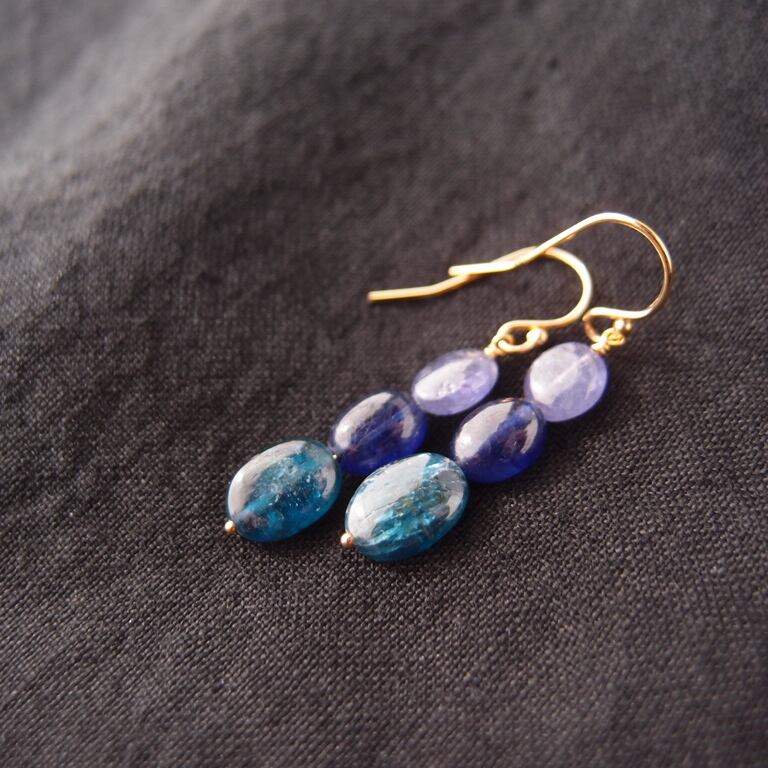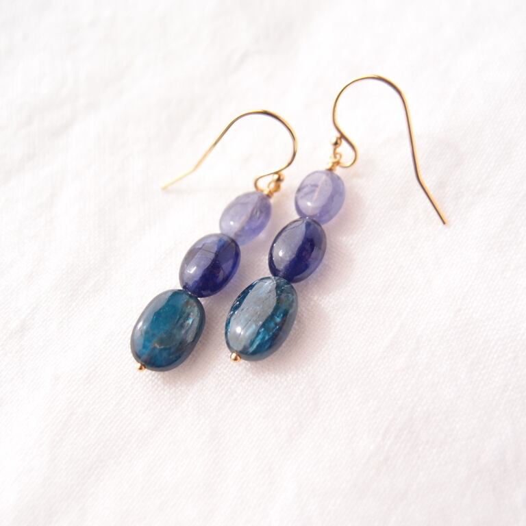 【K14gf】Three colors Earrings/タンザナイト×ブルーサファイア×カイヤナイト ピアス(Oval)